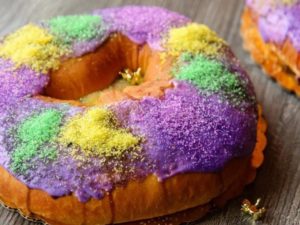 What is a King Cake? The name “king cake” comes from the Biblical story of the three kings who bring gifts to Baby Jesus. A blend of coffee cake and cinnamon roll, king cake is usually iced in yellow, green, and purple – the colors of Mardi Gras — and is frequently packed with fruit fillings and decadent cream cheeses. Hidden within these season sweets also lie a special surprise: a plastic king cake baby to continue the fun. If you eat the piece of cake with the plastic baby, the following year it’s your turn to provide the cake.