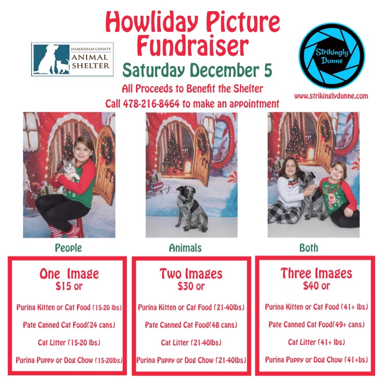All proceeds will benefit the shelter. Photo sessions are limited. Call 478-216-8464 for an appointment.