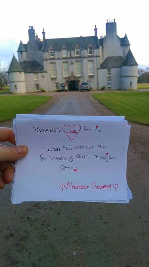 In the early morning hours with his unsuspecting wife fast asleep, Rolando uploaded dozens of photos of notes to Nora from around the world.