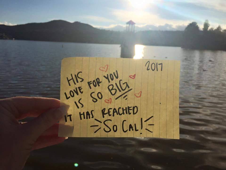 The locations were different – Abu Dhabi, England, Scotland, Malaysia, Virginia, Southern California, and Hershey, Pennsylvania, to name just a few. There were even notes sent from Hogwarts Castle in Orlando and from the Super Bowl in Houston, Texas.