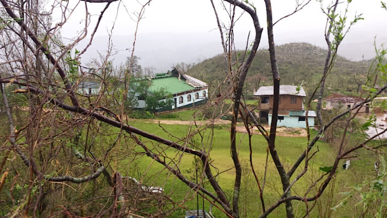 The campus is in the mountainous region between Les Cayes and Pestal, a once beautiful piece of property surrounded by mountains and trees, now pummeled into timber. “What used to be impossible to see is now visible for miles,” Pastor Mike added. “Villages are several feet under water. 95% of all homes are gone. Crops destroyed, livestock dead, and people, the most valuable of all possessions, in complete and total desperation.”