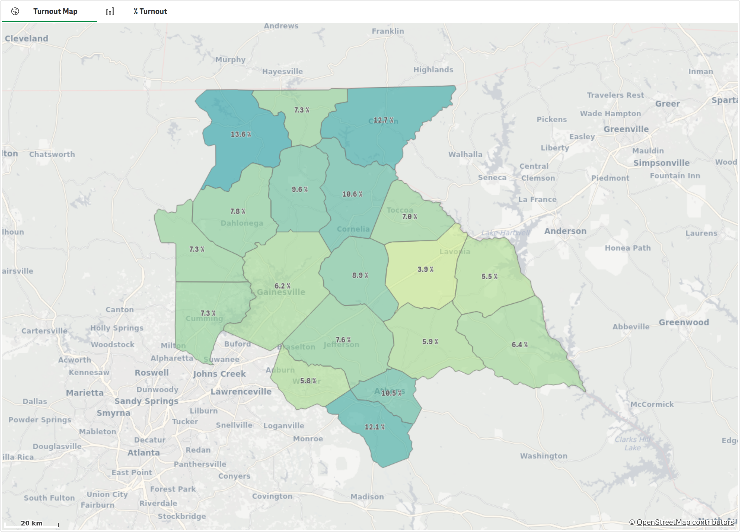 Turnout across Northeast Georgia is at 7.8%, with 61,520 of the region’s 787,254 active registered voters casting ballots ahead of Election Day.