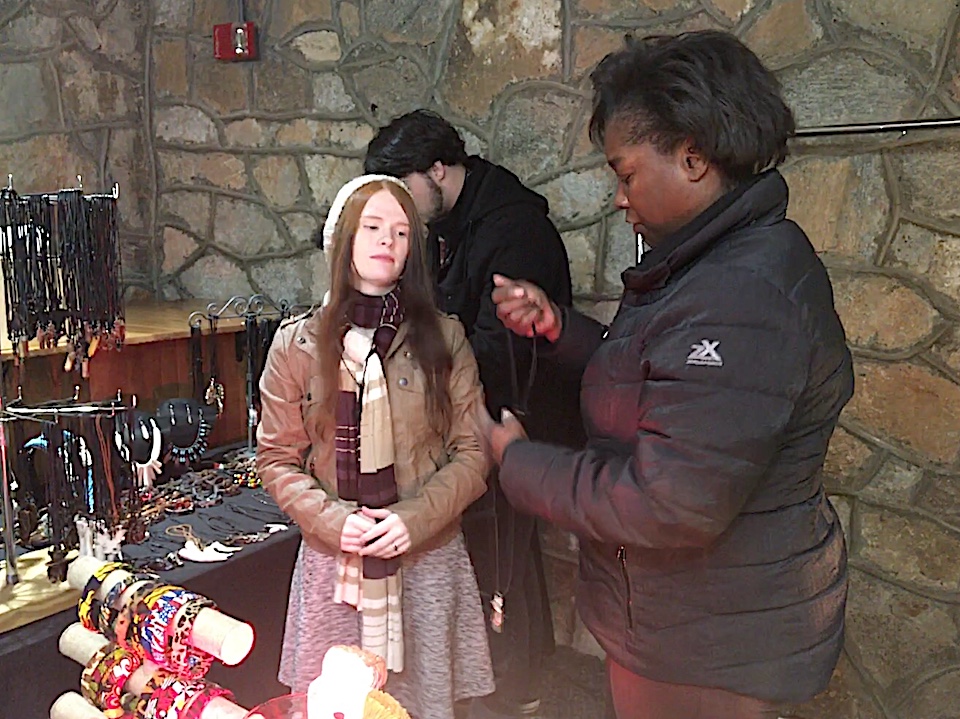 Events kicked off Thursday with Santa holding court in the Community House. Dancers entertained in the main hall. And vendors set up shop in the basement. Delita Perrino of Atlanta was among them. She owns Gifts Galore in Atlanta. Perrino designs and sells much of her own merchandise including jewelry, clothing, and body oils.