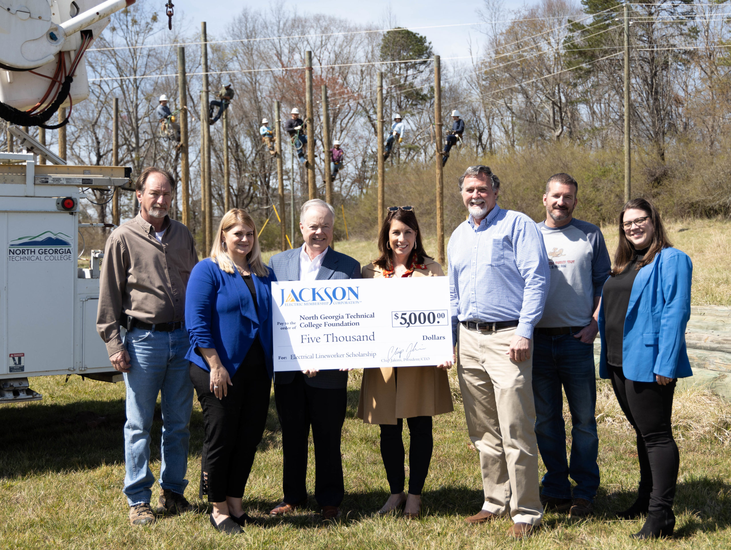 Jackson Electric Membership Corporation recently donated $5,000 to North Georgia Technical College for electric lineworker student scholarships.