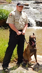 Above: Falco pictured with his handler Habersham County Sheriff’s Corporal Johnathan Thomas. (PHOTO/HCSO)