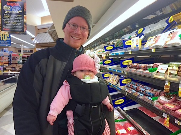 7-month old Ayla is all bundled up, grocery shopping with her dad during the winter storm. Ayla is the daughter of Soque River Watershed Executive Director Justin Ellis and his wife Ching-yu Huang.
