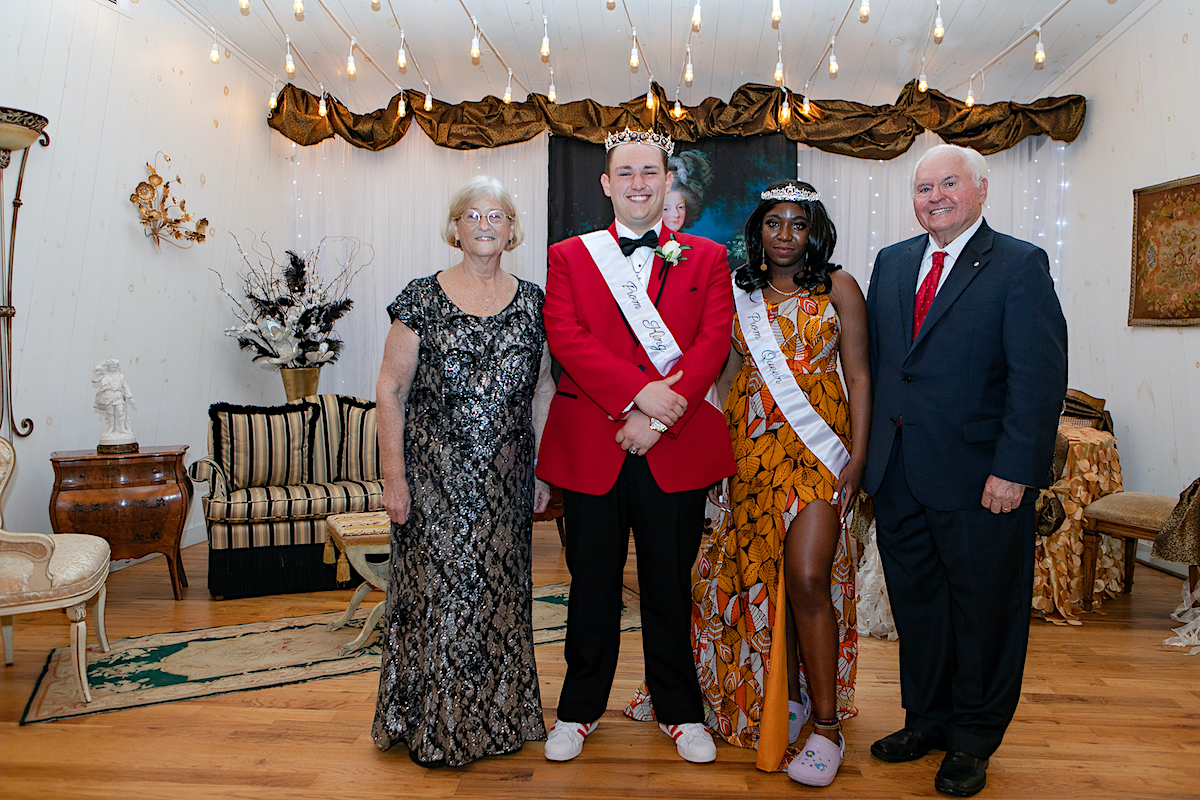 Shown, from left, are Tallulah Falls School Board of Trustees Chairwoman Gail Cantrell, Prom King Tate Whitfield, Prom Queen Mia Kwarteng and TFS President and Head of School Dr. Larry Peevy. (Brooke Gragg/Artistic Images)