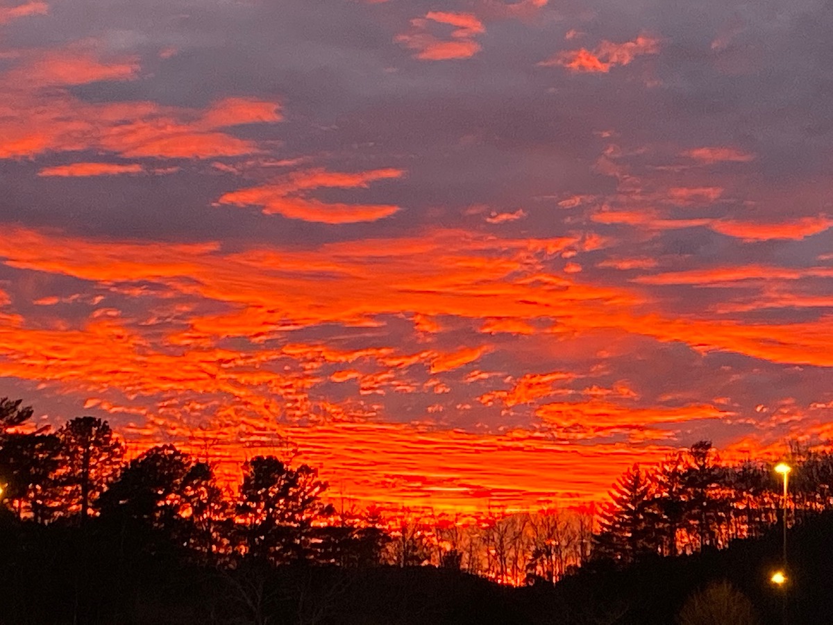 “Oh that sunset! Sweeping brush strokes of fuchsia, violet and rose, startled by electric streaks of tangerine. God was showing off tonight.” – Deanna Neal-Dwyre, LulaSunset over Clarkesville – Sherri PurcellSunset over Dawsonville – Ronda RogersSunset over Dahlonega – Sherry GreavesSunset over Martin – Renee CanadySunset over Maysville – JL ArredondoSunset over Cleveland – Jordyn Baker“…and wrapping it up in Rabun.” – Pamela Watts, Rabun County, GA