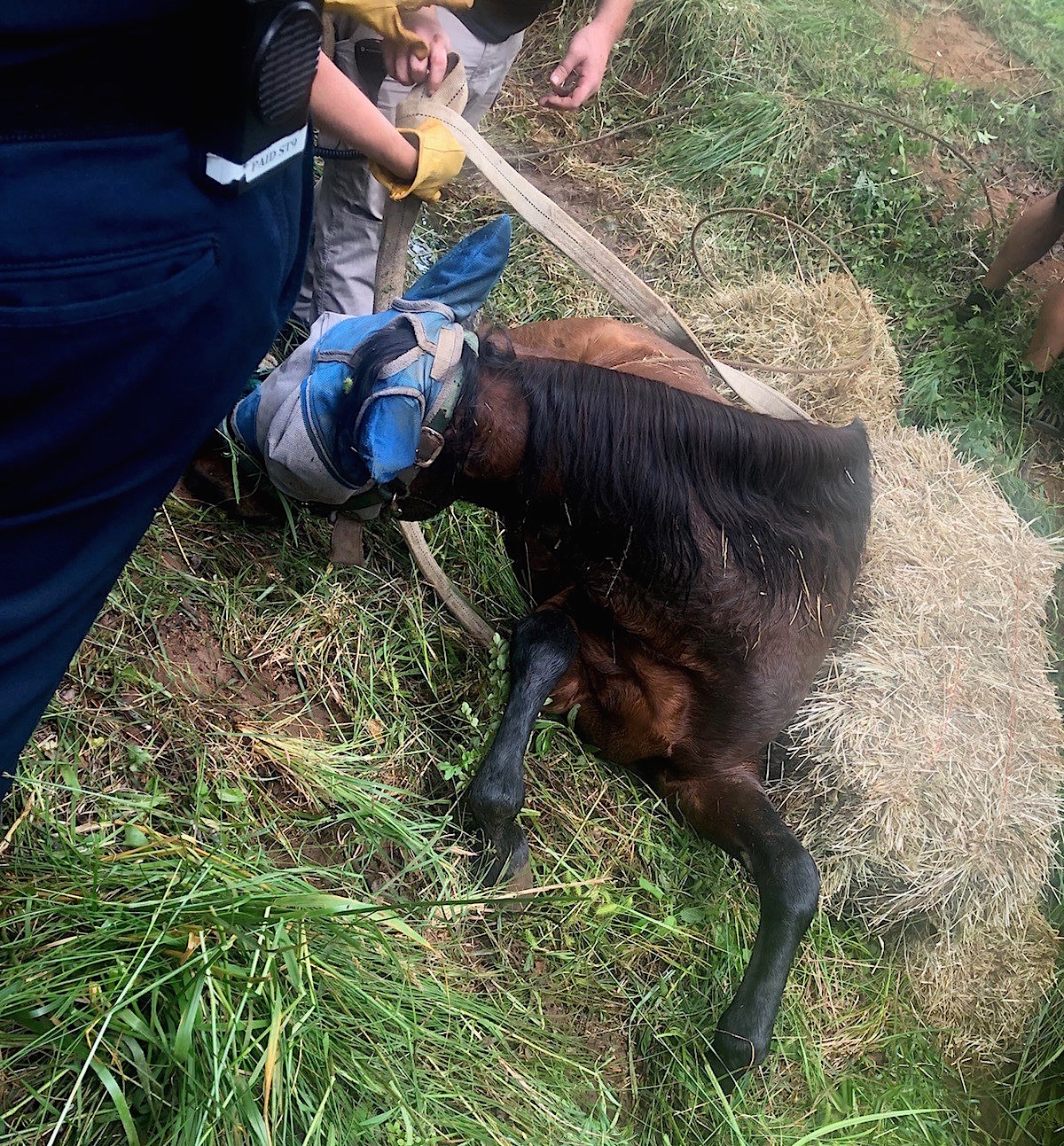 It took several attempts, but Black says HCES units were able to help the owner and a veterinarian on scene pull the animal to safety using a wide tow strap and tractor.