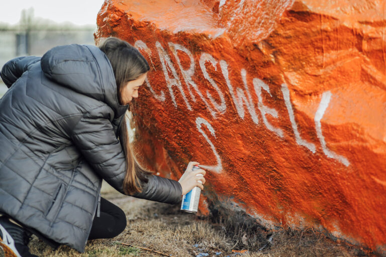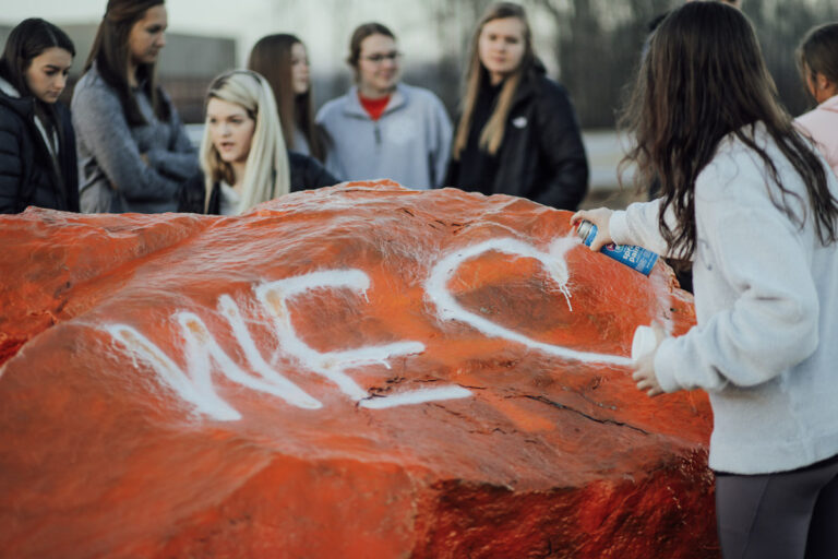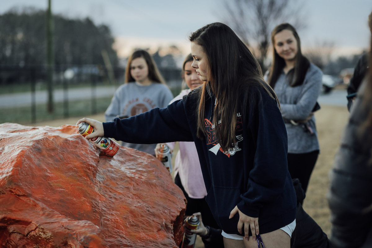 The Rock at Habersham Central High School in Mt. Airy got a makeover on Tuesday. Â Students painted the iconic landmark to show their support for junior Hadden Carswell, who was critically injured in an automobile accident on Feb. 24.