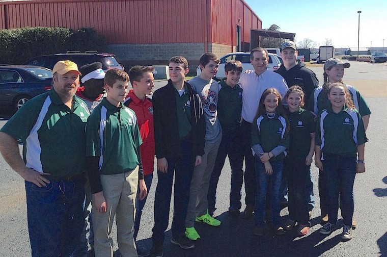 Texas Senator and GOP presidential hopeful, Ted Cruz, poses with members of the Habersham County 4-H Archery Team in Perry, GA. (PHOTO/Jason and Phil Hogan)