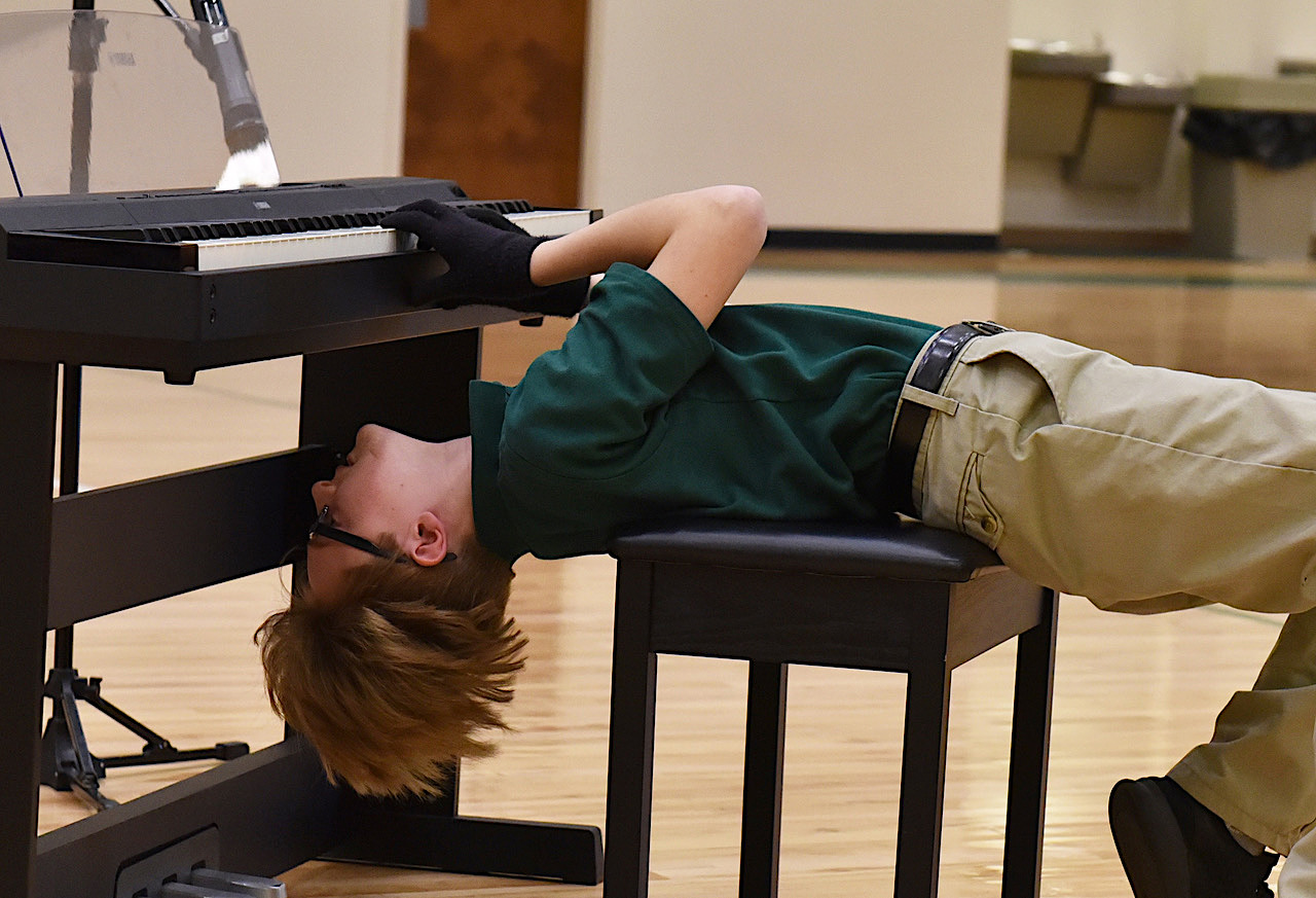 Sixth-grader Jake Owensby of Cornelia displayed a rare talent as he played “Amazing Grace” on the keyboard while upside down.