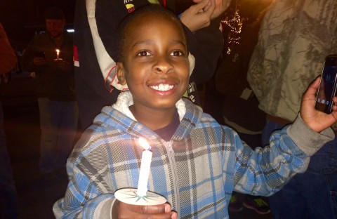 7-year old Feldon is thrilled as he watches Santa arrive at the Demorest Christmas tree lighting on Dec. 10, 2014.