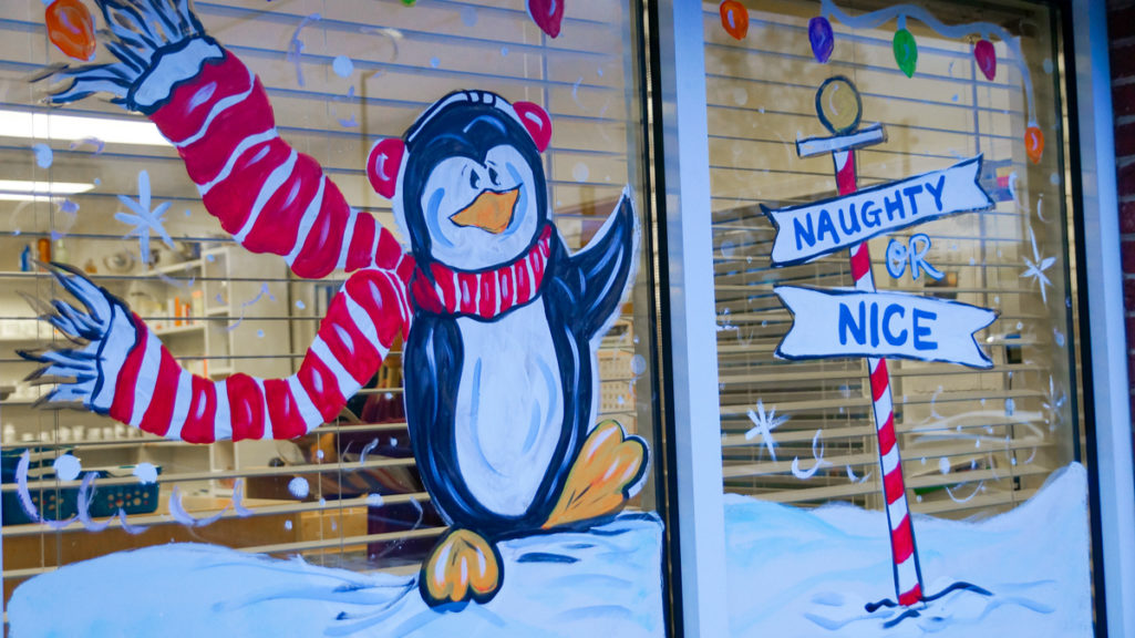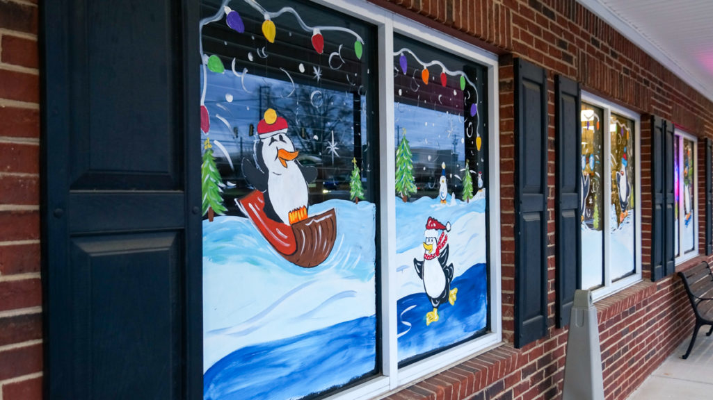 Johnson painted a total of 16 windows outside of Habersham Drug and Habersham Medical Surgical Services with a penguin snow day scene, and community members were filled with joy as her art brought a playful and festive feel to the area. She said some customers would sit in their cars and watch her paint or would come by multiple times a day to see the scene come together.