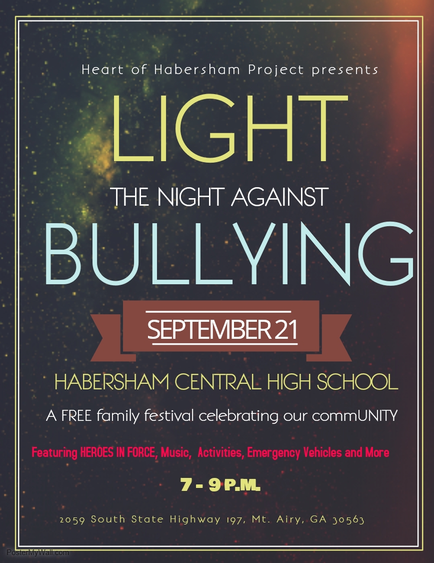 Heart of Habersham will hold its first public event on Friday, September 21 at Habersham Central High School in Mt. Airy. “Light the Night Against Bullying” is a free, family-oriented festival designed to emphasize unity in our community.
