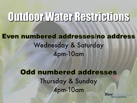 During a Level 2 Drought Response, outdoor landscape watering is only allowed two days a week determined by odd and even-numbered addresses. Even-numbered addresses and properties without numbered addresses may water on Wednesday and Saturday between 4 p.m. and 10 a.m. Odd-numbered addresses may water Thursday and Sunday between 4 p.m. and 10 a.m.