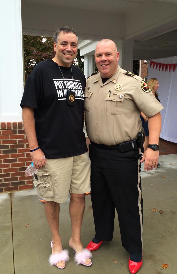 Together is exactly how Richard Stein of Clarkesville and his son, Rich, stepped out on Saturday. They had a good time hamming it up for the camera in their furry pink pumps and ladies’ green, slip-on sandals but they never lost sight of the importance of the event. “Often people don’t realize just how much domestic violence effects the family unit and children,” the elder Stein says.