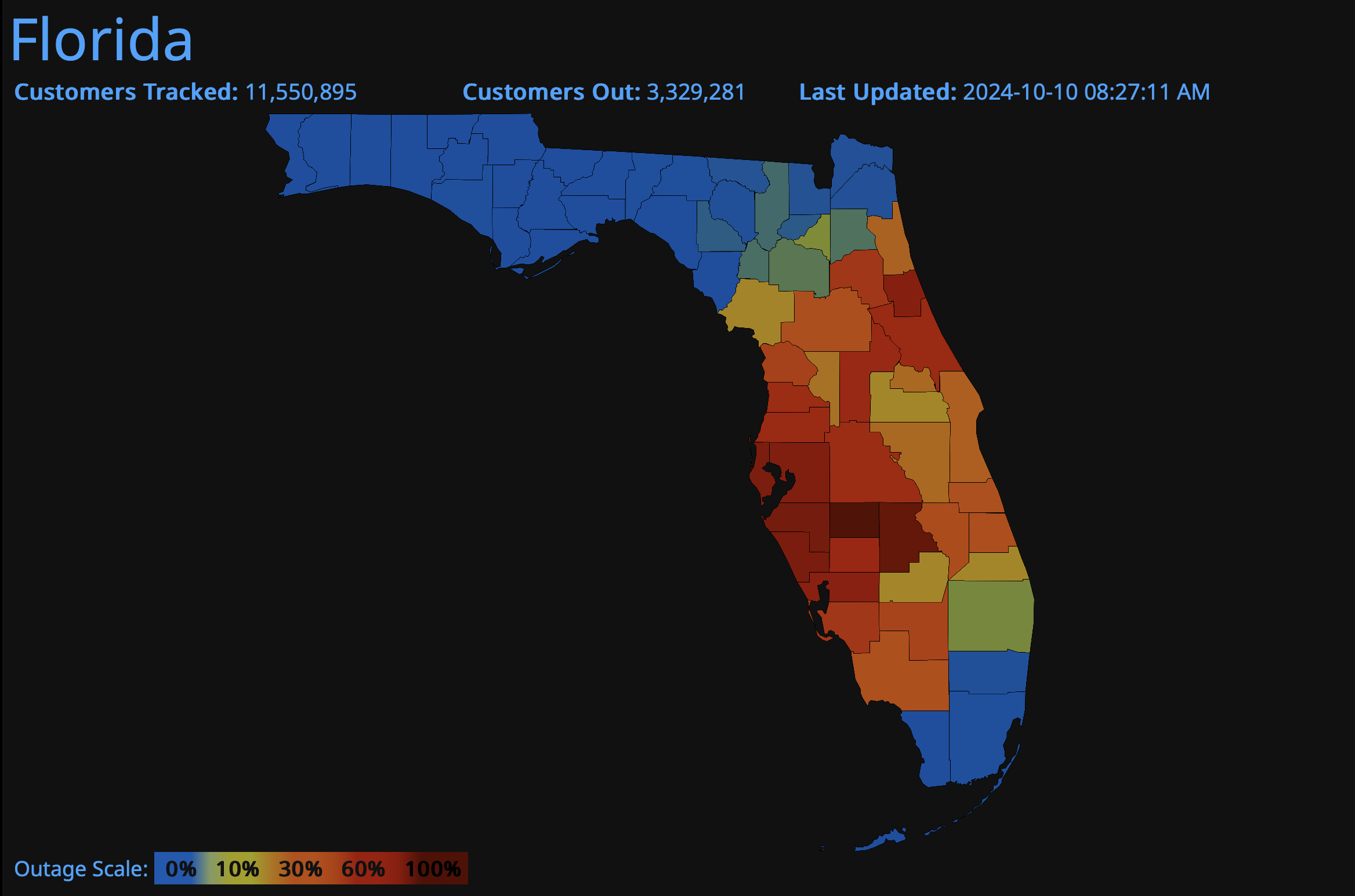 More than three million homes and businesses across Florida were without power early Thursday, Oct. 10.