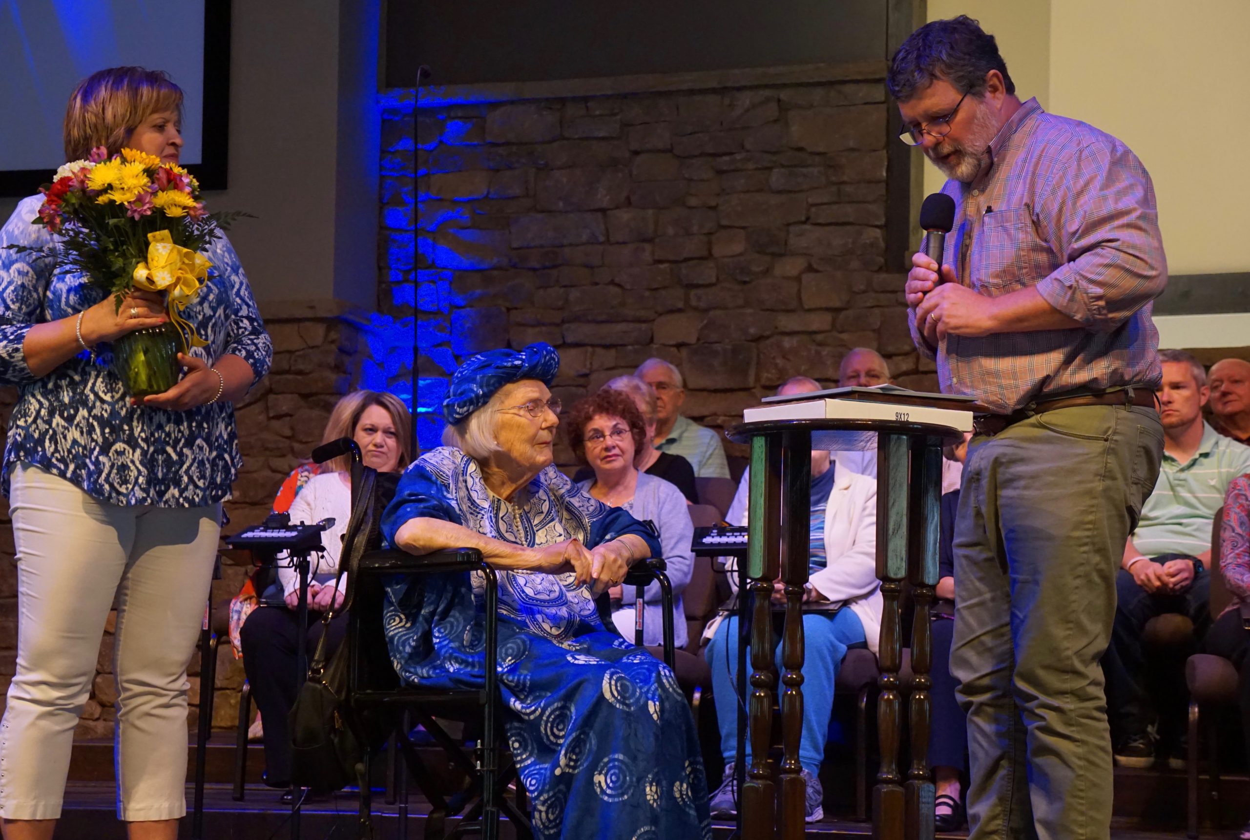 On Sunday, May 1st, Anita was honored during morning worship. She was escorted onto the worship platform by her niece, Brenda Nicholson.