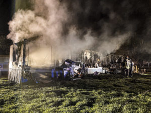 The fire quickly spread through the mobile home and firefighters were unable to save it. There were no reports of any injuries.