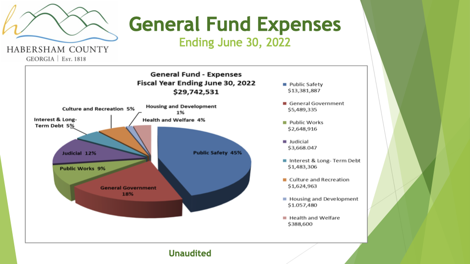 Last fiscal year, that ended June 30, 2022, the General Fund collected $29,742,531 in revenue. Property taxes made up 55% of that amount or $16,070,849. The county spent the same amount collected. Public Safety made up 45% of those expenses or $13,381,887.