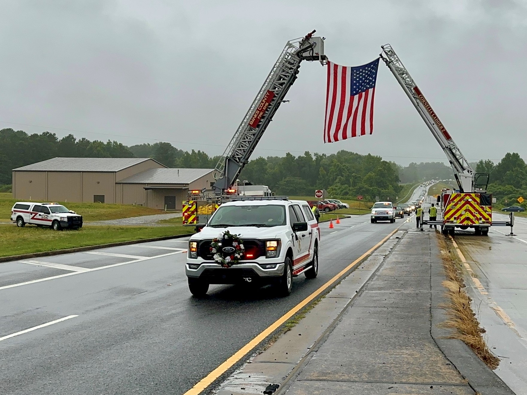First responders participating in the procession were there to assist him. Habersham County EMS transported Davis to Northeast Georgia Medical Center in Gainesville.
