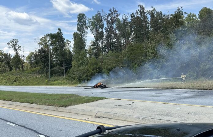 Authorities say the wreck happened near Whispering Pines Drive at 2:01 p.m. on Sept. 15. A Kawasaki motorcycle was headed north when, for reasons still under investigation, the rider lost control. The driver, Johnathan Williams, was thrown from the bike as it skidded down the roadway. The motorcycle came to rest in the right northbound lane, where it erupted in flames.