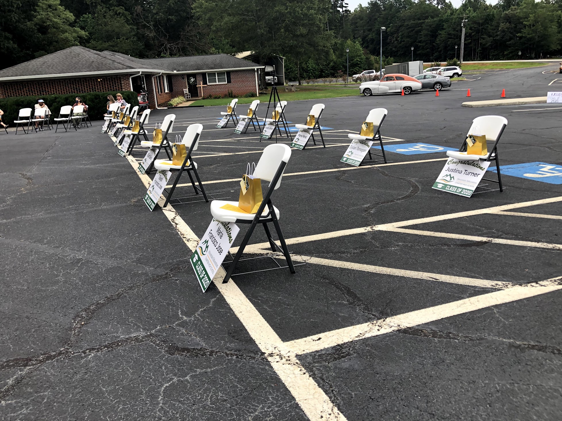 Habersham County Sheriff’s deputies escorted the students from the high school in the Fairview community to Antioch Baptist Church in Mt. Airy where they took part in the evening outdoor ceremony.