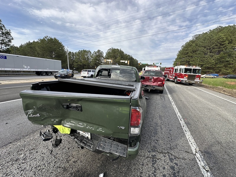 The impact caused the Impala to rear-end a Toyota Tacoma pickup truck driven by John Ferguson, 28, of Mt. Airy. The Tacoma rear-ended a Ford F-150 pickup driven by 77-year-old Charles Wright of Toccoa.