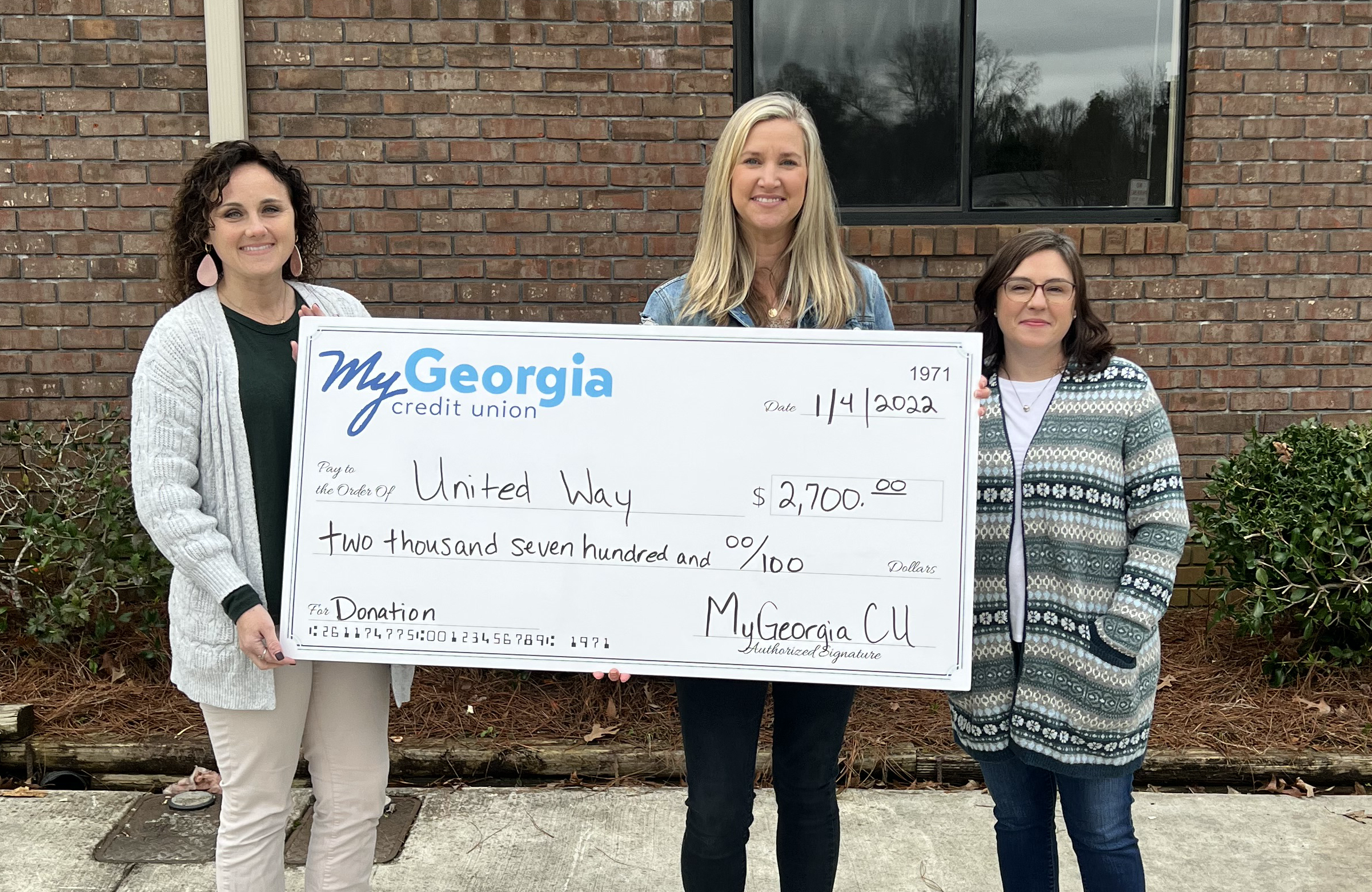 MyGeorgia Credit Union recently donated to the Habersham and Hall County United Ways. Each agency received $2,700 as part of the credit union’s commitment to helping the communities it serves.