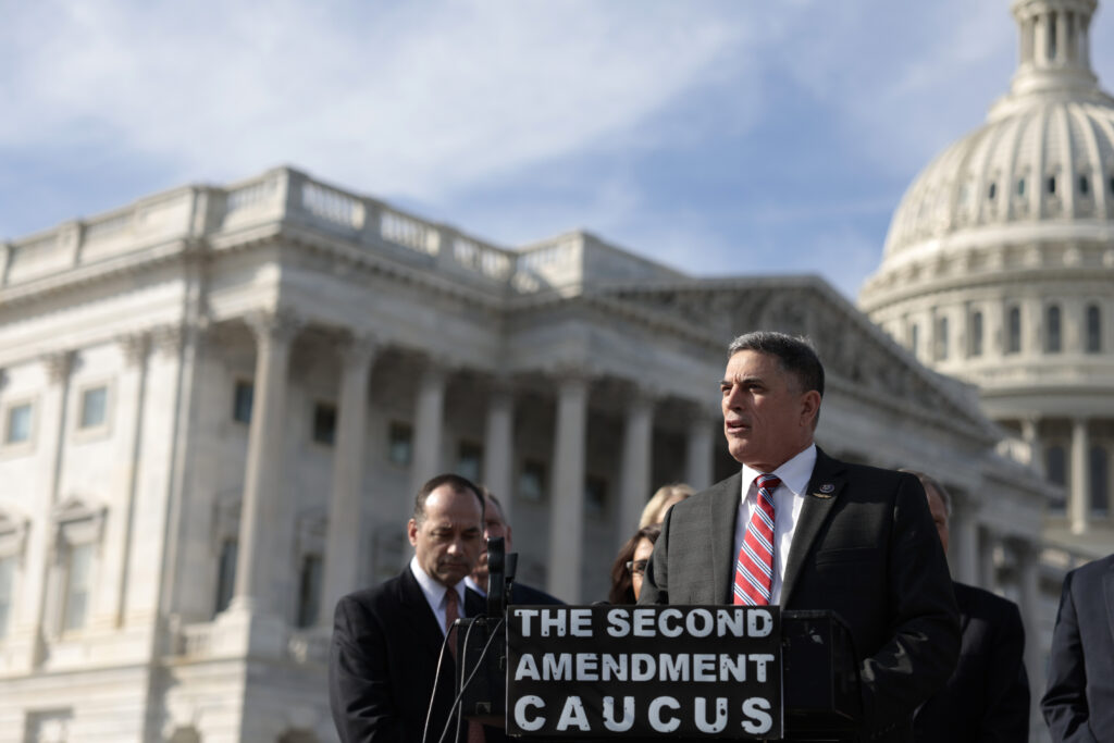 WASHINGTON, DC - MARCH 08: Rep. Andrew Clyde (R-GA) speaks at a press conference, alongside members of the Second Amendment Caucus, outside the U.S. Capitol Building on March 08, 2022 in Washington, DC. The caucus held the news conference to talk about their support for Rep. Michael Cloud’s (R-TX) gun rights legislation, the “No REGISTRY Rights Act” which if passed would make it illegal to track gun ownership. (Photo by Anna Moneymaker/Getty Images)