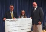 VFL board member Bill Loyd of Piedmont College (left) and Habersham County School Superintendent Matthew Cooper present Wills with her prize check for winning...