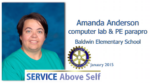 Baldwin Elementary School computer lab and PE parapro Amanda Anderson is this month's recipient of the Habersham County School System's Service Above Self Award....