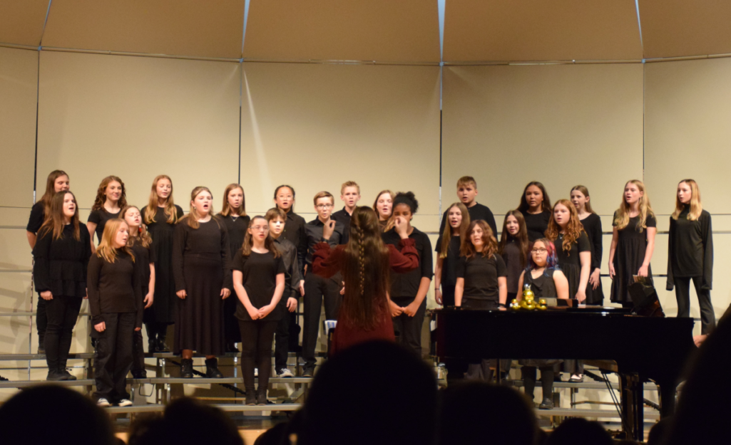 The sixth-grade chorus kicked off the performance with lively renditions of “Fifty States in Rhyme” and “Beautiful December.” Their energy and enthusiasm set the tone for the evening.