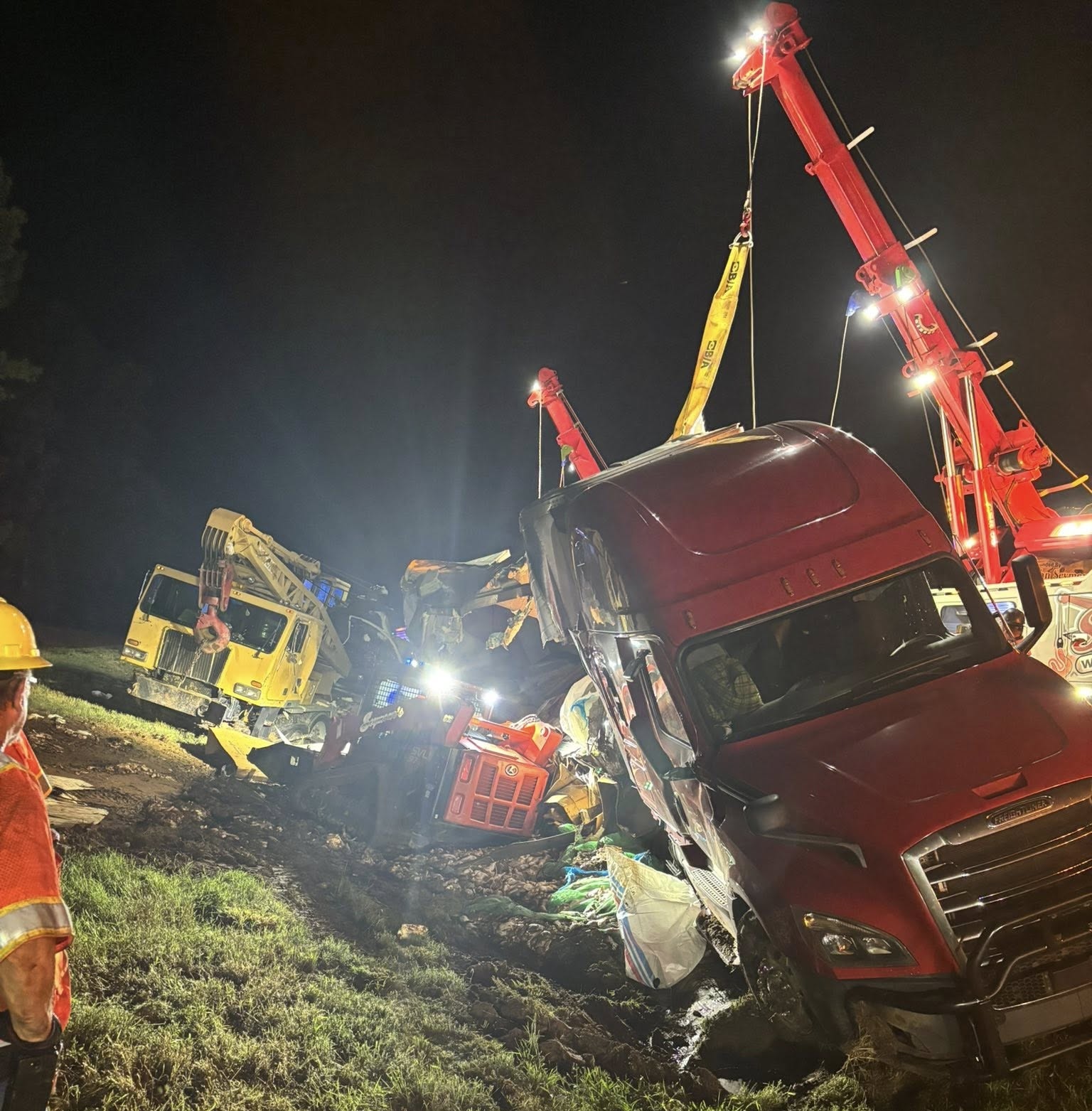 An early morning crash on I-85 in Franklin County caused quite a mess Thursday. Pictures from the scene show crews uprighting a tractor-trailer that officials said collided with a crane.