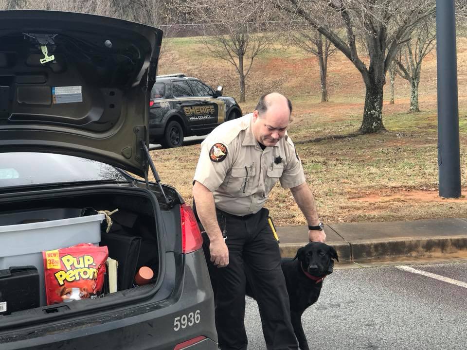 The Hall County Sheriff’s Office brought in bomb-sniffing dogs to search the school. (HCSO Facebook)