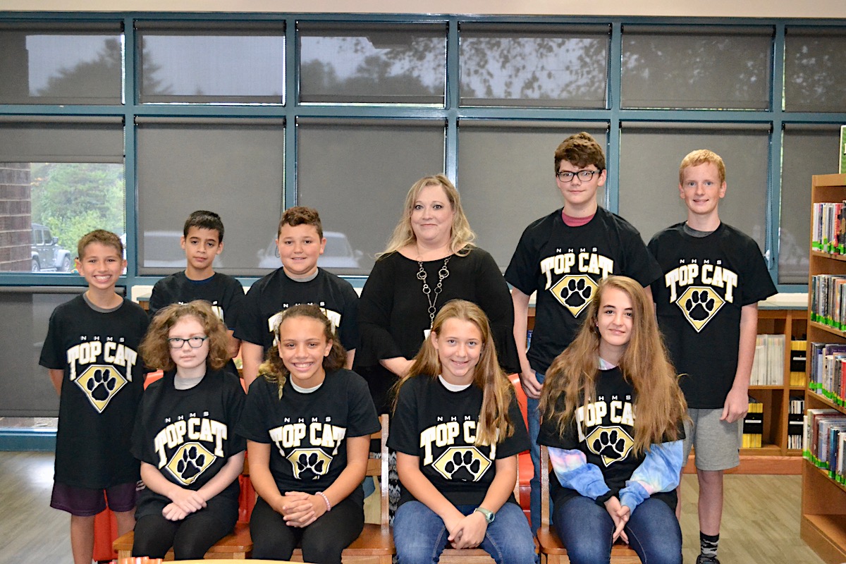 Nine students and a 7th grade Language Arts teacher were named North Habersham Middle School Top Cats for September. They are back row (l-r): Holden Smith, Gabriel Sotelo, David Medina, Mrs. Amy Pitts, Nolan Ballew, Henry Hawkins. Front row (l-r): Hannah Remillard, Charlize Barbour, Kelsie Campbell, Nicole Joslyn.