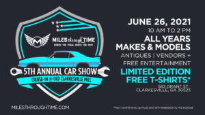In Habersham County, the fifth annual Miles Through Time Car Show will begin at 10 a.m. on Saturday the 26. Come to Clarkesville for cars, vendors, antiques, music and more! Visit the Miles Through Time Museum website for more information.