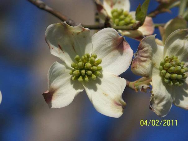 The actual Dogwood flowers themselves are quite small, yellow-to-yellow-green in color and are packed tightly into a larger flower head. From the records kept by the writer, it is noted that buds can begin to open as early as March 1st or as late as April 4th, reaching full-bloom by April 15th as an average date.
