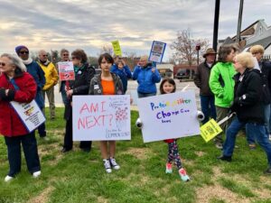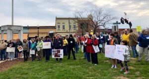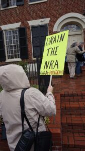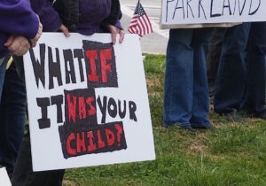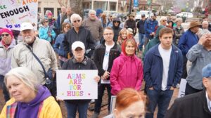 Webb says she was heartened by the number of people who turned out Saturday – 170 by organizers’ count. The crowd included students and teachers. “For more than one hour we listened to students from high school and colleges tell of the need to go to school in an environment where they do not worry if someone is going to march into their class and start shooting,” says Webb.
