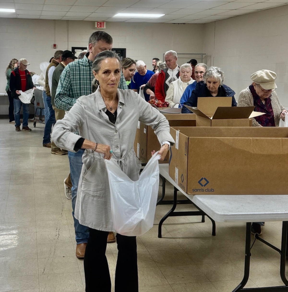 Volunteer Ann Sutton, assistant vice president for advancement and development at Piedmont University, has been helping with the weekly packing effort for several months.