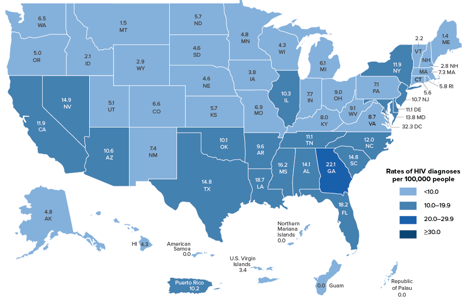Rates of New HIV Diagnoses in the US and Dependent Areas, 2020. (Credit: Centers for Disease Control and Prevention)
