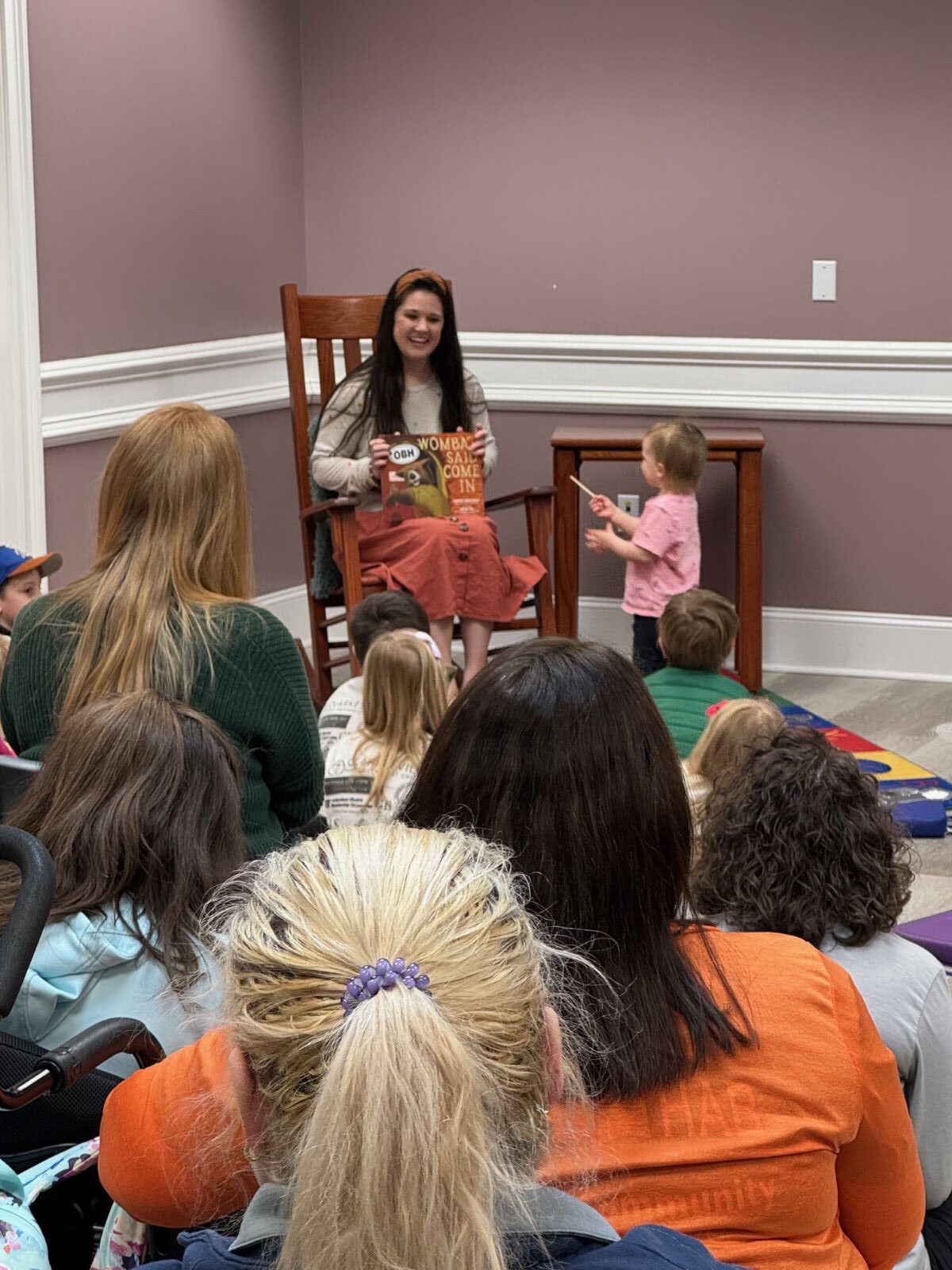 Amanda Almazan, Youth Services Coordinator of Clarkesville Library, read to an excited group of listeners.