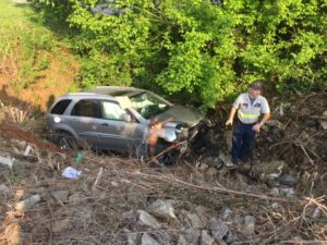 Craven’s SUV landed upright in the culvert. The vehicle’s front and side air bags deployed. Craven was temporarily knocked unconscious. She was transported by ambulance to Northeast Georgia Medical Center in Gainesville with lacerations and bruises.