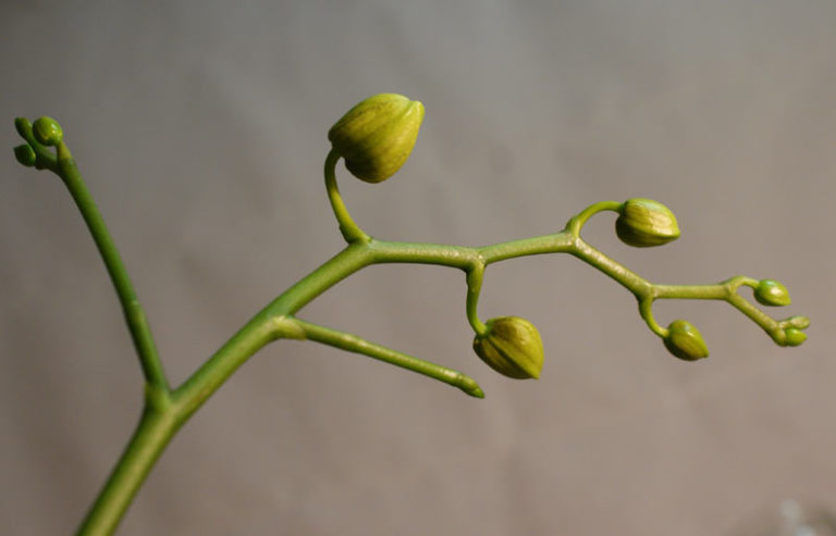 “dancing lady”. Unlike some varities, this one thrives on a little more neglect. Water when the mix just approaches dryness. This will mean about every 5-7 days. They also prefer bright, diffused light.