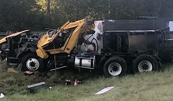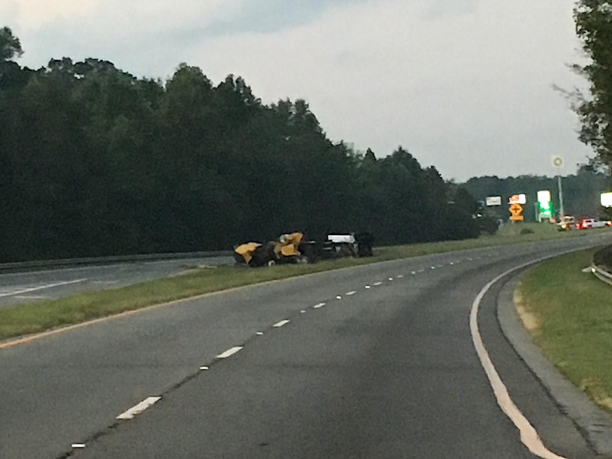 The Georgia State Patrol identifies the truck driver as 32-year-old Lawrence Charles Rogers of Athens. He was driving a 2012 Volvo VN tractor trailer northbound when he says a deer ran out in front of him. Rogers says he swerved to miss the deer and came up behind a garbage truck. He braked and swerved again to avoid impact. The truck ran off the road into the median where it overturned.
