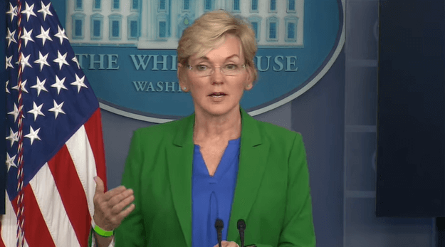 Secretary of Energy Jennifer Granholm compared stockpiling gas because of the Colonial Pipeline shutdown to the toilet paper hoarding seen early in the pandemic last year. (Screen capture of White House live stream)