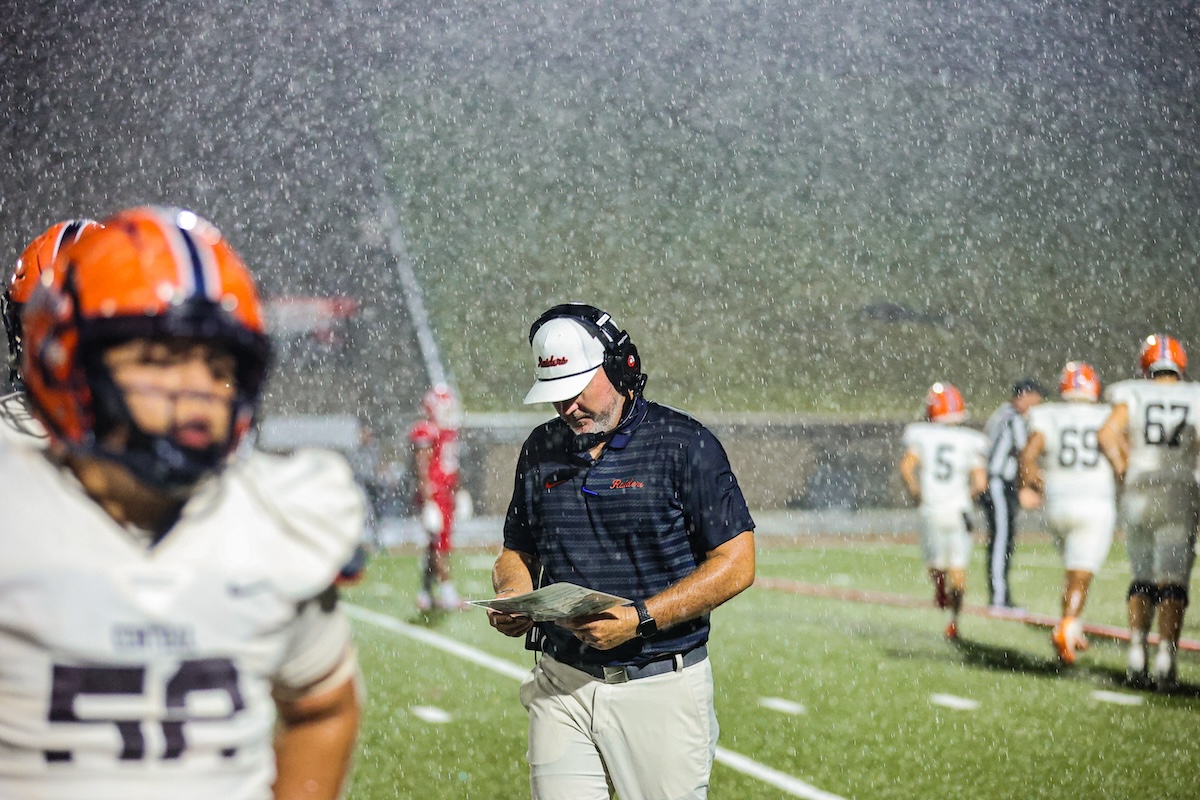 The weather cooperated for the first half of the game but was called due to lightning with just over 5 minutes left in the 3rd. (Daniel Purcell/NowHabersham.com)(Daniel Purcell/NowHabersham.com)(Daniel Purcell/NowHabersham.com)The Habersham Central High School Band of Blue (Daniel Purcell/NowHabersham.com)(Daniel Purcell/NowHabersham.com)HCHS Band of Blue (Daniel Purcell/NowHabersham.com)(Daniel Purcell/NowHabersham.com)(Daniel Purcell/NowHabersham.com)HCHS Head Coach Benji Harrison plotting the plays before the 3rd quarter call to end the game due to lightning. (Daniel Purcell/NowHabersham.com)
