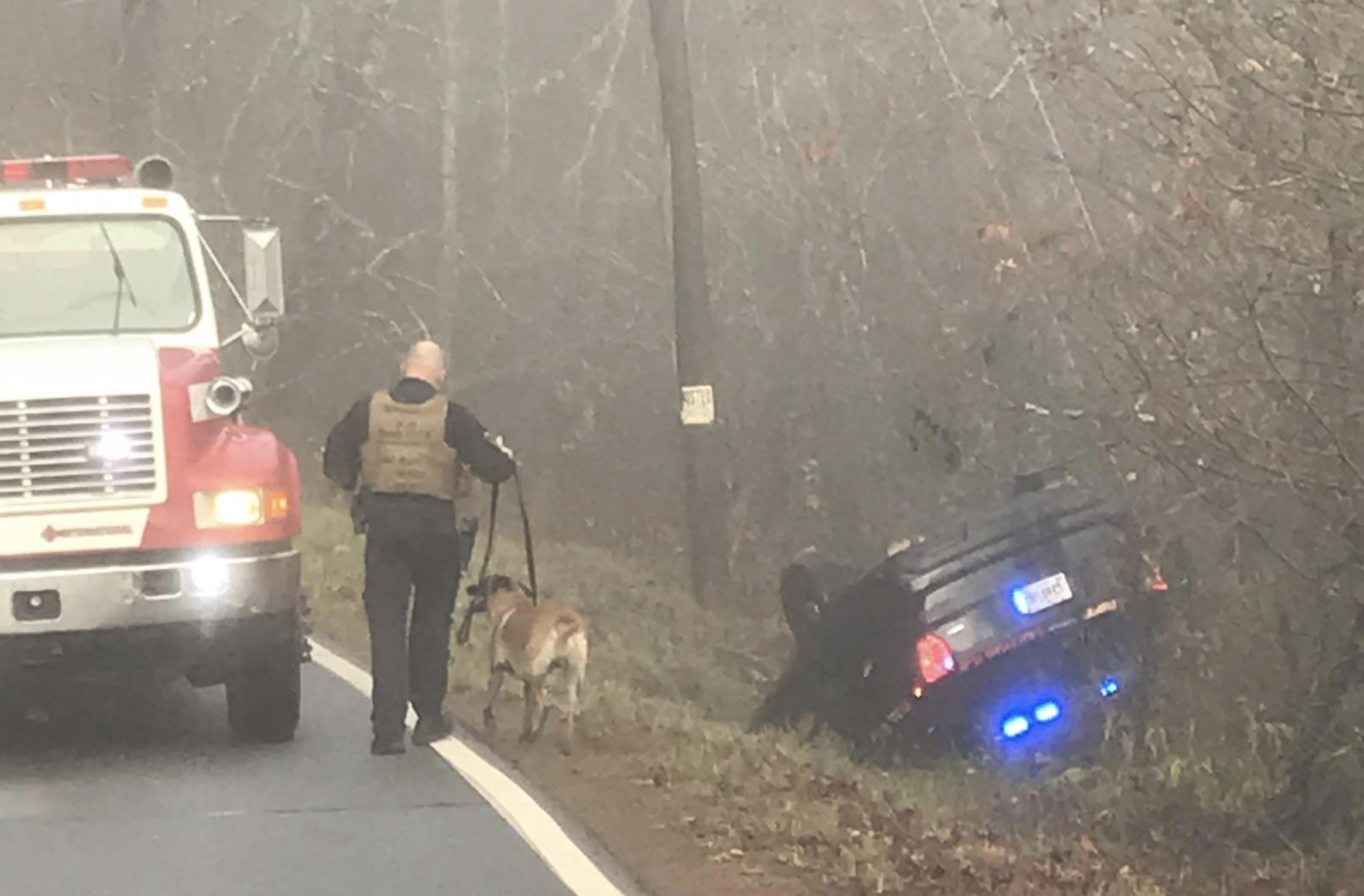 The deputy’s Ford Explorer landed on its top. Deputy Jason East and his K-9 both escaped uninjured.