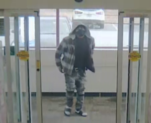 The ACCPD shared an image of the suspect, who was wearing a flannel shirt and a hoodie with his face concealed.